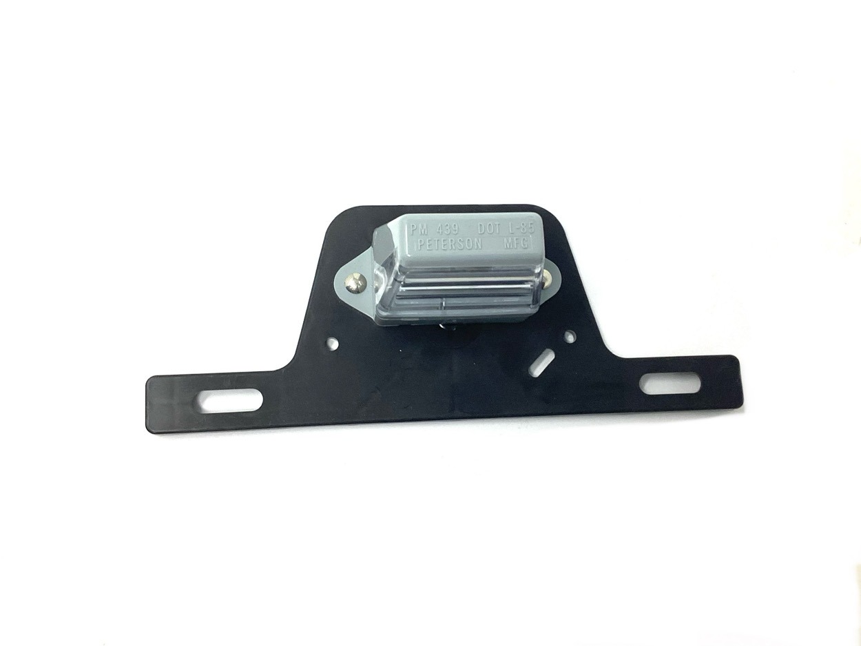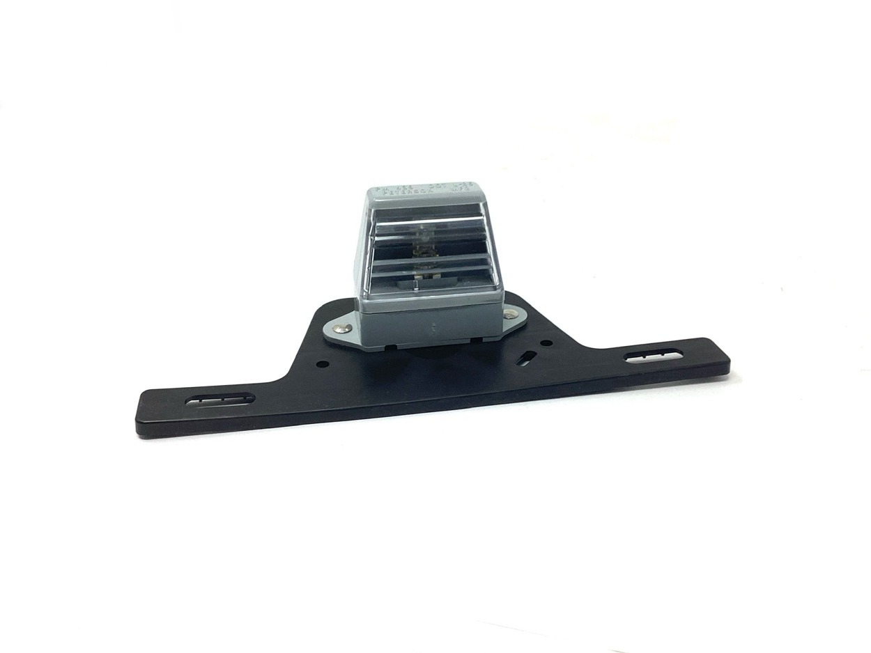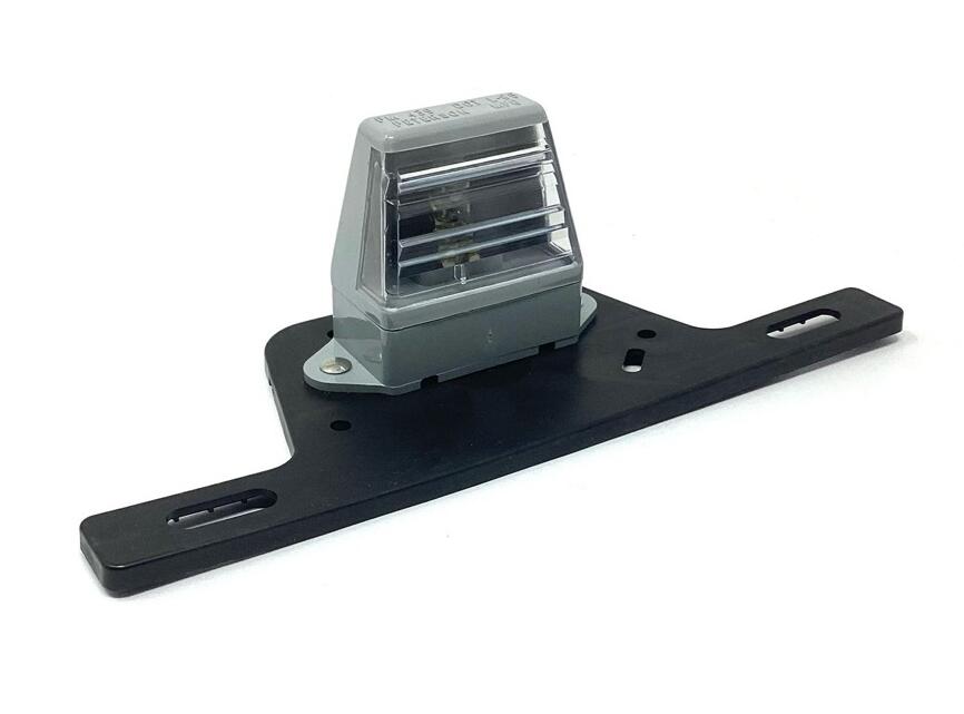 License Plate Light; Light features gray coated cover with stainless steel mounting base. Bracket is steel with black finish. Single wire, self grounding and surface mounts on 3.5 inch centers and includes mounting hardware. Bulb is replaceable with 194 bulb.