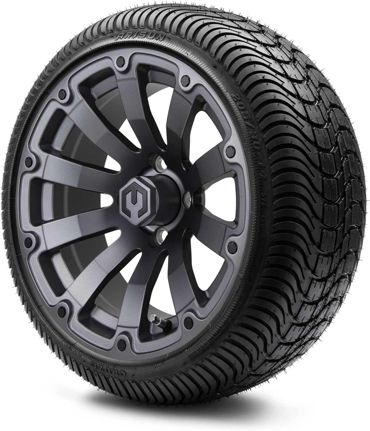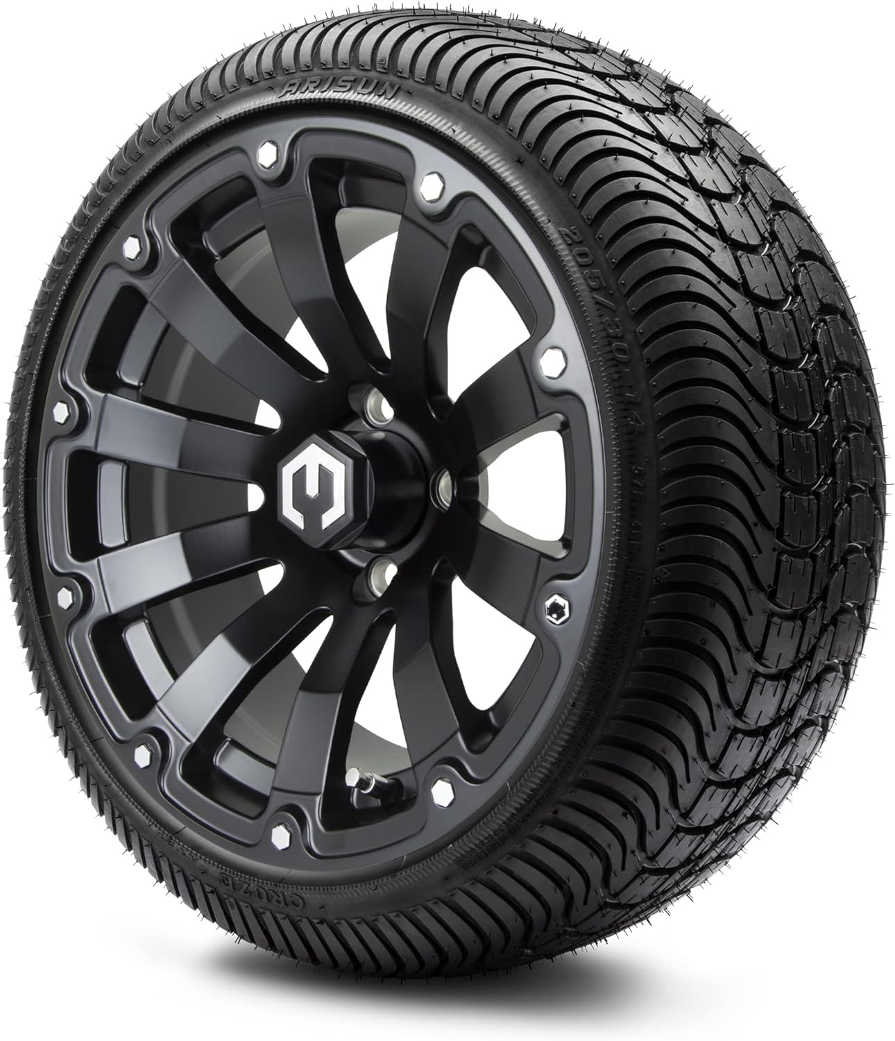 MODZ® Bomber Matte Black 14″ Golf Cart Wheels and Arisun Cruze (205/30-14) Low Profile DOT Golf Cart Tires Combo – Set of 4